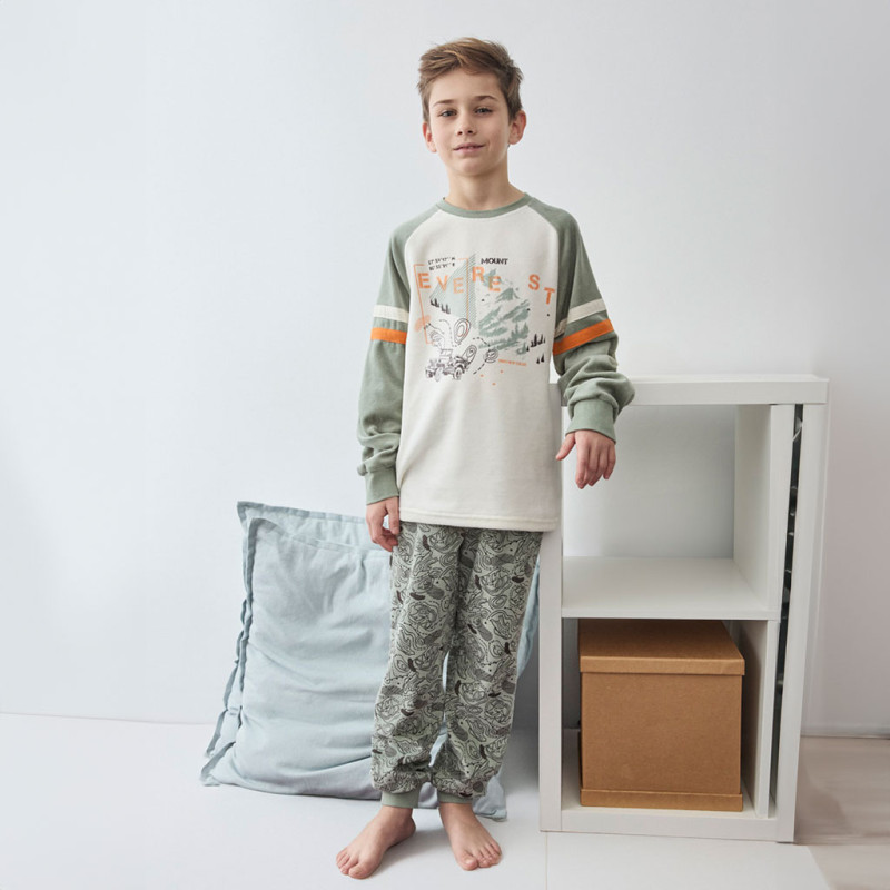 Pijama juvenil en color verde oliva de la marca Tobogan.