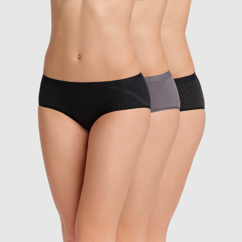 Pack x3 culotes Dim de la línea "Les pockets". Son muy cómodos y adaptables gracias a su tejido de algodón elástico, además están disponibles en divertidos estampados y colores. ¡Hazte con tu pack de culotes Dim!