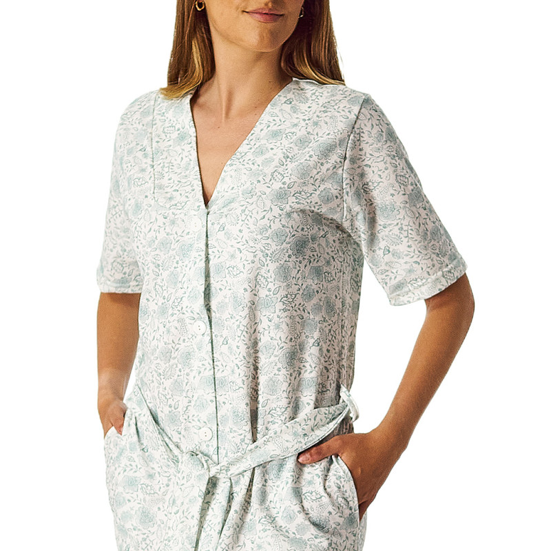 Bata de manga corta para mujer en tejido de algodón estampado, de la marca Leniss.