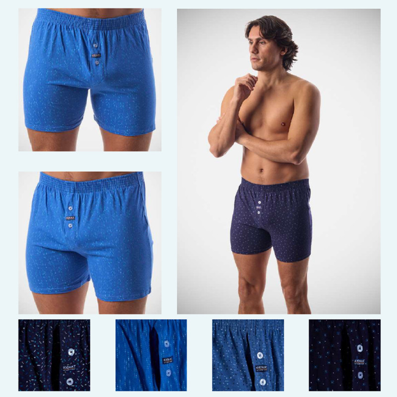 Pack de 2 Bóxers clásicos de hombre fabricados en algodón con estampado de fantasía y apertura de botones en la bragueta. El pack de dos unidades incluye un modelo con estampado de rayas y otro con estampado de topos. Marca Kehat.